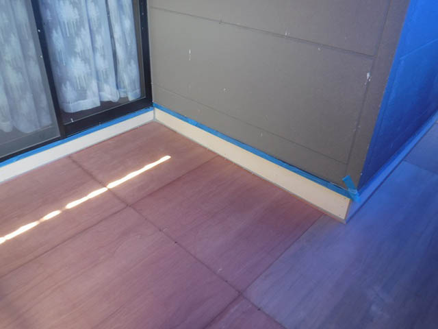 前回までに既存の床の上に新しい板を重ね張りしました。