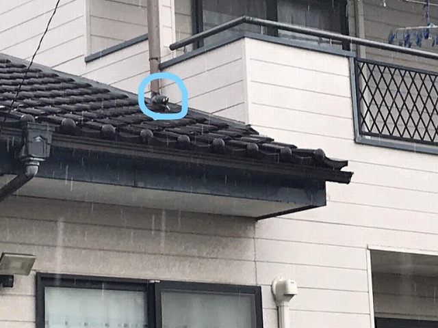 先日の台風で1階の屋根瓦の一部が破損してズレてしまい、雨樋のパイプも一部取れたそうです。