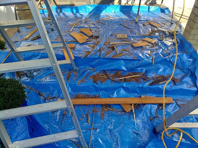 既存の長い木材でできた軒天井をすべて撤去します。