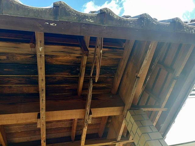 軒天井を解体して屋根の野地板を確認しました。