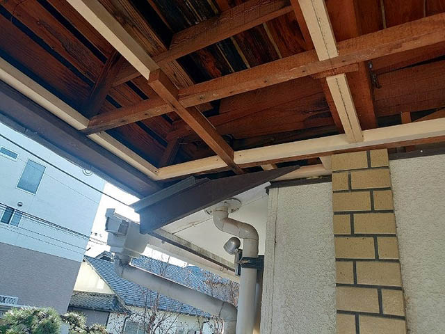 今回は新しい軒天井を張るために傷んだ下地の木材を補強する工事をします。