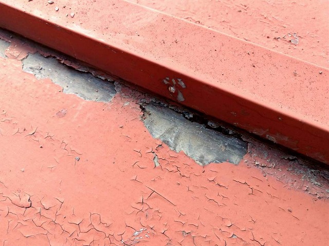 板金屋根についた剥がれかかった塗装の膜が付いたままコーキングの作業をしてしまうと、コーキング剤が傷んだ塗装の膜と一緒に剥がれてしまうからです。