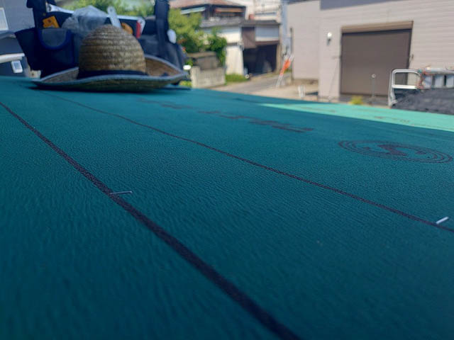 庇の上には雨に工事期間中に雨にぬれても大丈夫なように防水シートが張ってあります。