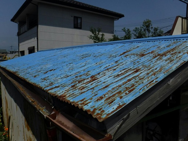 高崎市で農機具小屋のトタンの波板をガルバリウムカラー鋼板に張り替え工事