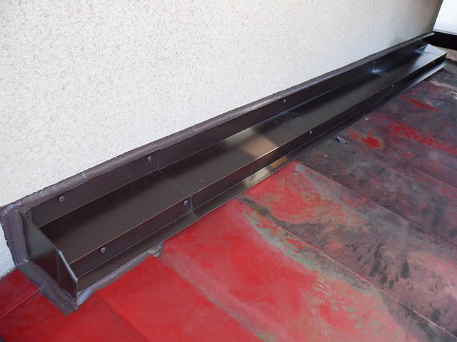 高崎市で雨漏りしてる板金屋根に雨押え板金取付と雨樋の架け替え