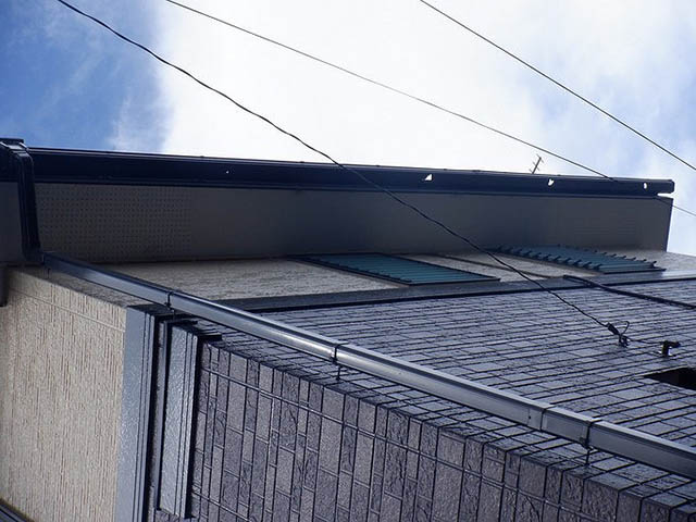 雨漏れ部分に雨押え板金・軒先の雨樋架け替え