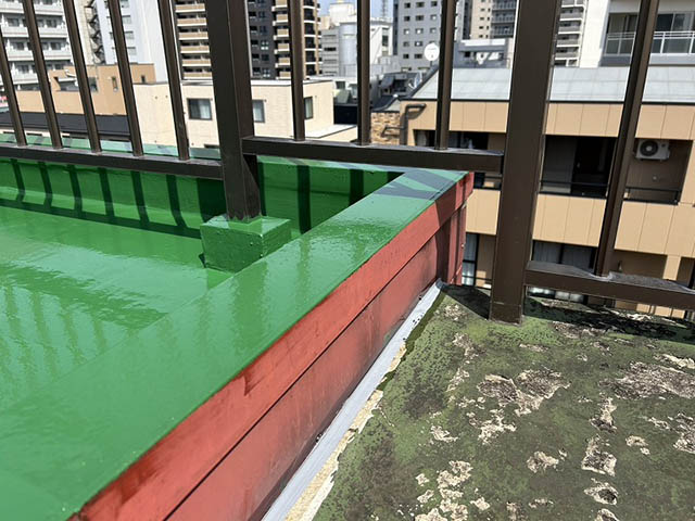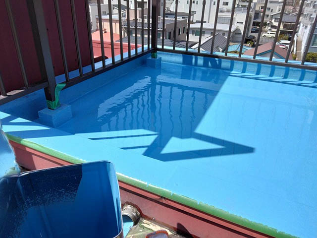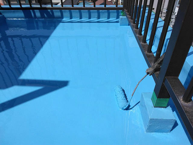 防水塗料を3回塗り重ねてしっかりとした屋上防水にします。