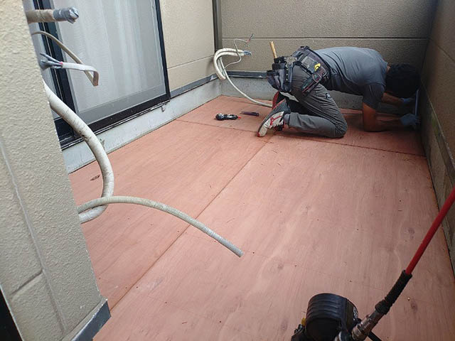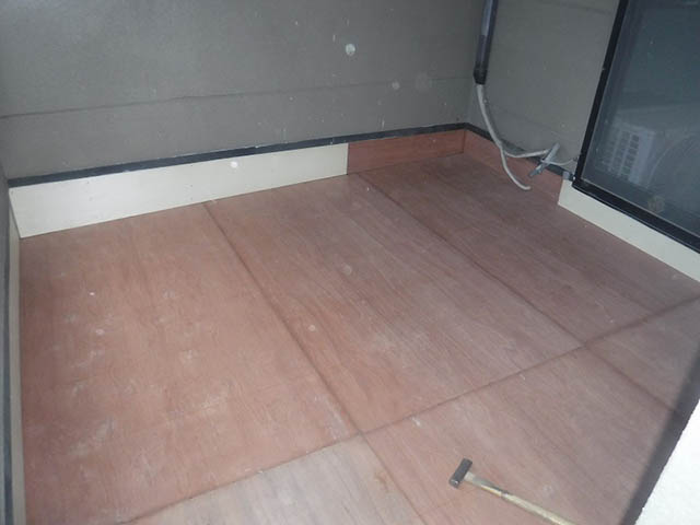 既存のベランダの床の上に新しく木の下地を重ねて張りました。
