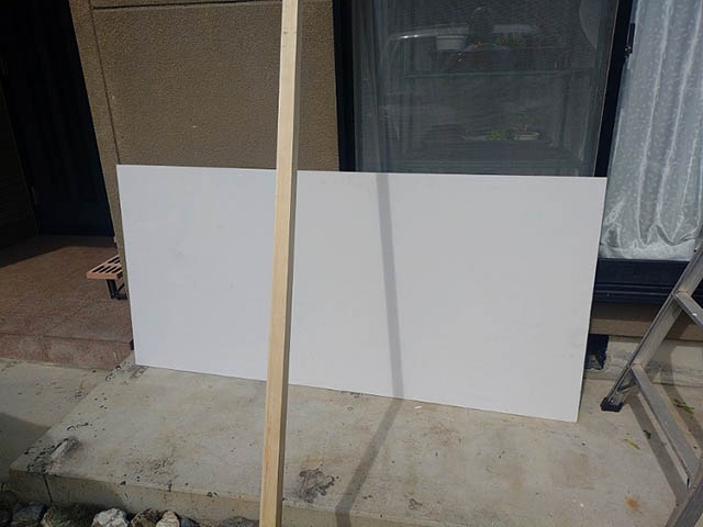 今回軒天井の張り替えで使用するケイカル板と木材です。