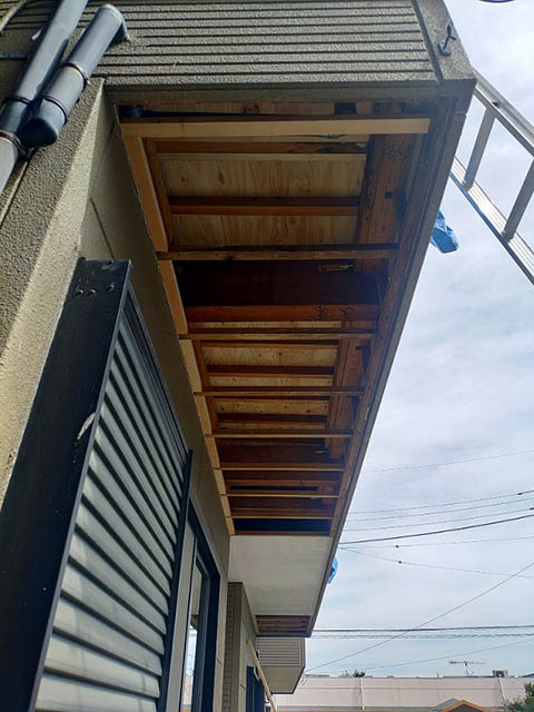 新しい軒天井を張ります。
