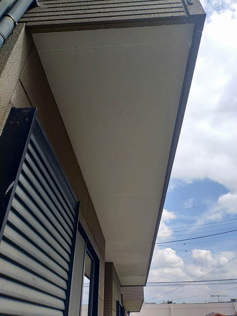 今回は雨漏りがひどかったベランダ排水口直下の軒天井の張り替えをしました。