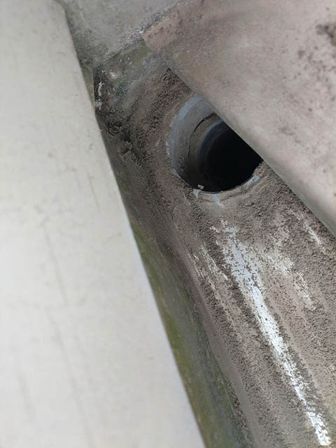 雨樋の中を掃除すると土で塞がれていた雨水の落とし込み口が出てきました。