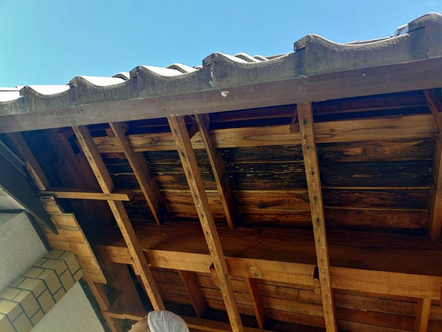 軒天井を解体して屋根の野地板を確認しました。