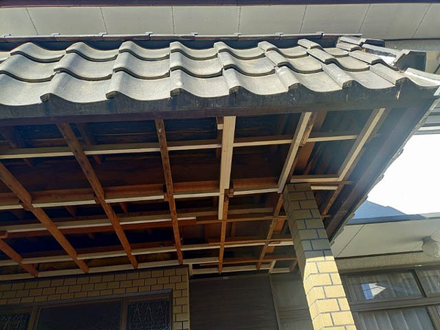 今回は新しい軒天井を張るために傷んだ下地の木材を補強する工事をします。