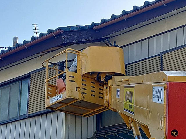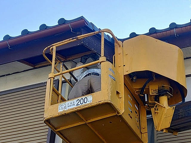 2階の屋根なので足場が必要なのですが、敷地などの関係で足場を組むことが難しいので高所作業車を使い工事することになりました。